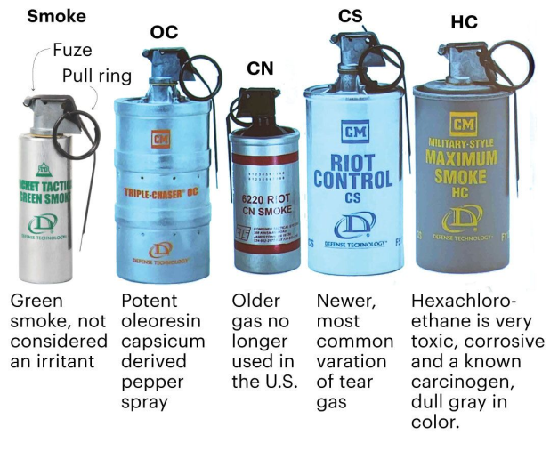 The canister with the blue text is a tear gas canister sold by Defense Technology (product page, specifications). Tear gas has been linked to adverse reproductive health outcomes and is likely an abortifacient. University of Minnesota School of Medicine Professor Ash Hassan even told The Star Tribune that tear gas can cause long-term effects such as blindness, respiratory failure, and even death. The City of Minneapolis still allows law enforcement to use tear gas as crowd control.